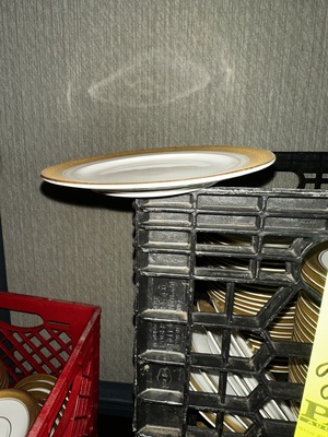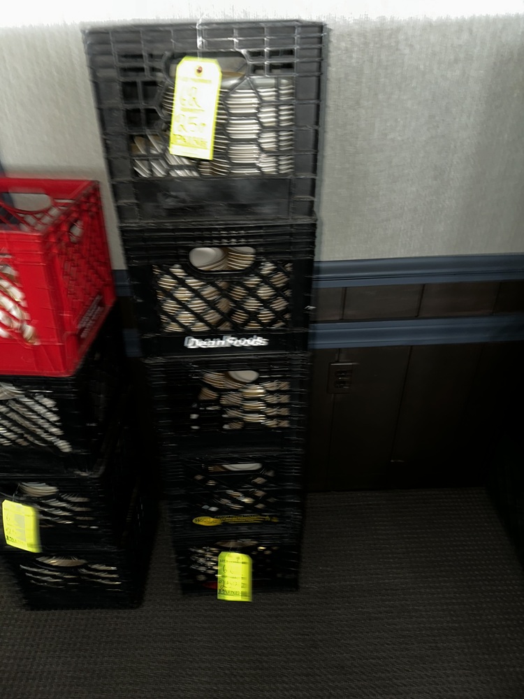 (1) Lot 5 Milk Crates 250 China Bread /Butter plates 6 1/4"