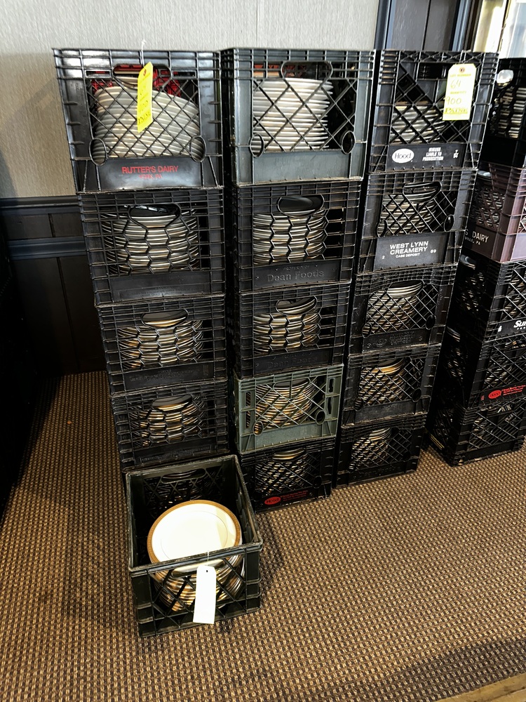 (1) Lot 16 Milk Crates 900 China Dinner Plates 10"