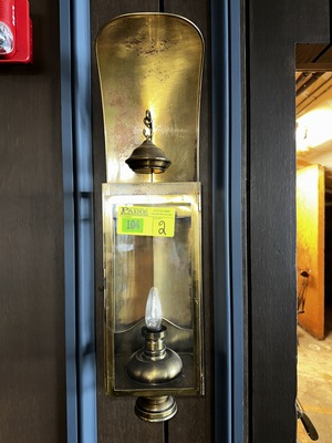 Item # 104 -- (2) Brass Wall Sconces 7"X8"X30" (1 Door Glass Missing)