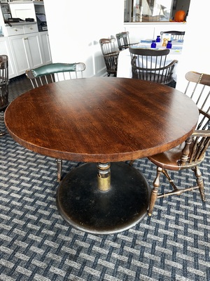 (3) Oak Top Tables w/Metal Bases (2) 48", (1) 42"