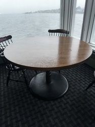 Item # 158 -- (3) Oak Top Tables w/Metal Bases (2) 48", (1) 42"