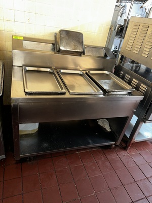 (1) S/S Table w/3 Full Size Drop In Inserts w/One Shelf Below 4'X3'X43" H