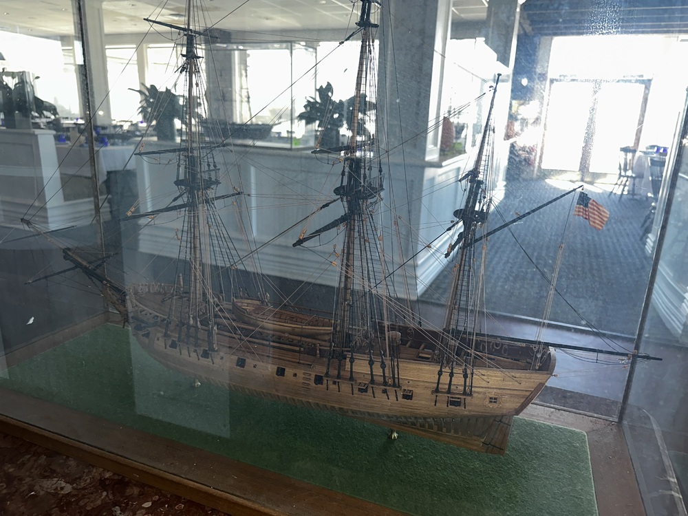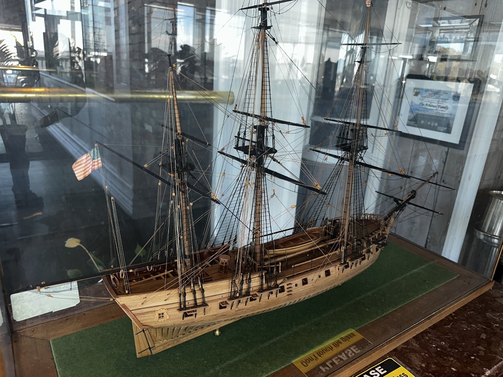 (1) Custom Made (Stick Built) American 3 Masted Frigate "Rattlesnake" R. Lansdon (Langdon 1962???) In Glass And Wooden Case 39"X14"X26" H