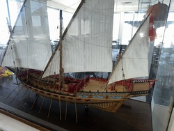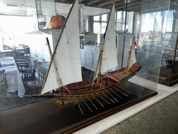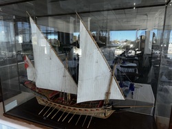 (1) Custom Made (Stick Built) Swedish Gun Boat In Glass and Wood Case 42"X15"X31" H