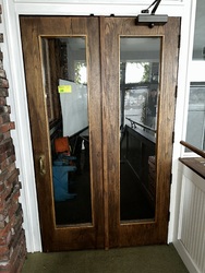 #104 - (2) Brass Wall Sconces 7"X8"X30" (1 Door Glass Missing)