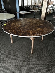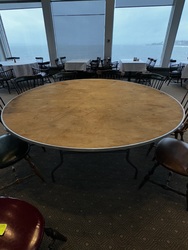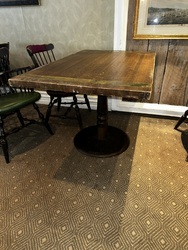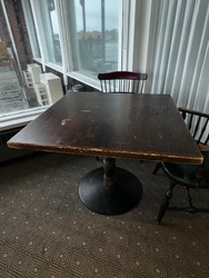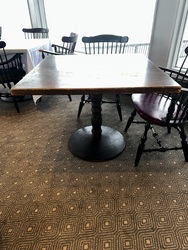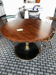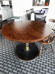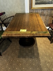 (5) Oak Top Tables w/Metal Base (3) w/Brass Banding