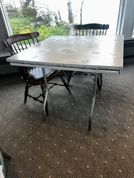 (3) Oak Top Tables w/Metal Bases (2) 48", (1) 42"