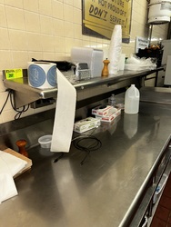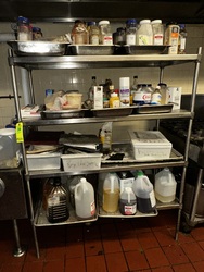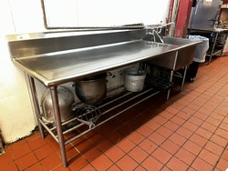 (1) S/S 1 Compartment Sink w/L Drainboard, 8" Backsplash and 2 Shelves Below 90"X30"