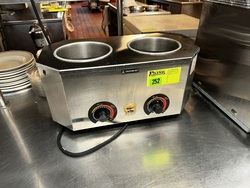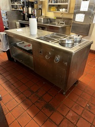 (1) S/S Table w/2 Drop In Full Size Food Warmers and 2 Storage Shelves 6'X27"