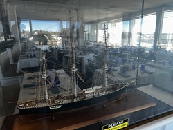 #319 - (1) Custom Made (Stick Built) 3 Masted Brigantine "Peacock" In Glass and Wood Case 49"X18"X35" H