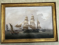 (1) O/C A Barque Leaving The Thames Passing The Nore, L.L. Robert Strickland Thomas (1787-1853) 29"X40" OAL