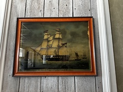 (1) O/C 3 Masted Ship "Merrie" England L.R. S. Walters 1858. In Original Frame. James Bourlet + Sons. 36"X51" OAL