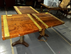 (2) Brass Bound Wood Top Dining Tables W/ Metal Base 3'X3'