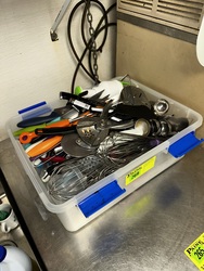 (1) Large Quantity Assorted Kitchen Utensils (Ladels, Tongs, Spoons, Knives, Wisks, etc)