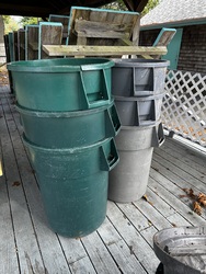 (6) Rubbermaid Outdoor 44 Galon Trash Barrels w/Covers