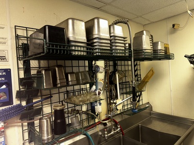 (1) Lot: All S/S Inserts,Utensils,Wall Rack Including Inserts on Top of Walkin