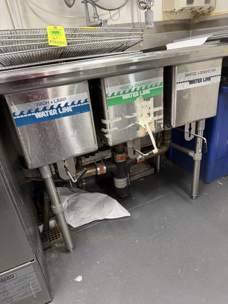 (1) S/S 3 Compartment Sink w/T+S Spray and 3 Lever Waste, 12"X20" Tubs, 78'X 26"