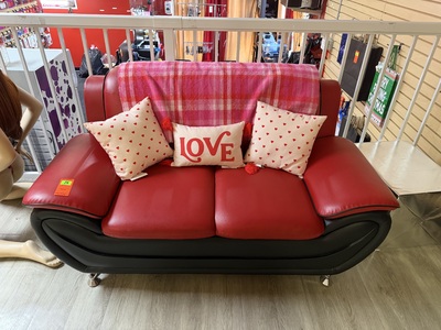 (1) 2- Cushon Faux Leather Sofa