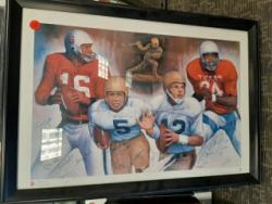 #288 - Heisman Trophy Award Winners Autographed Litho. Roger Staubach, Jim Plunkett, Paul Hornung, Glen Davis, Hopalong Cassidy etc. 20 Names In All. Certificate of Authenticity Phil Castinetti's Sportsworld