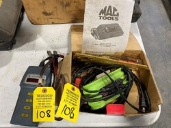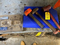 Matco bearing splitter,blue empty parts box,3 sledge hammers#76 - Milton battery tester,Solar battery charger/monitor