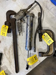 central pneumatic scaler, spark plug cleaner, snap on air impact wrench, Kent-moore clamp, ridgid wrench pipe#123 - single spring brake tool for GM, fuel line replacement kit