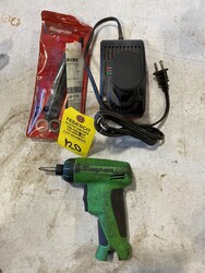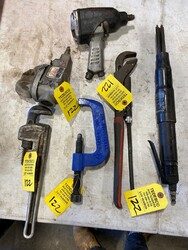 #122 - central pneumatic scaler, spark plug cleaner, snap on air impact wrench, Kent-moore clamp, ridgid wrench pipe