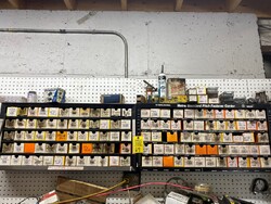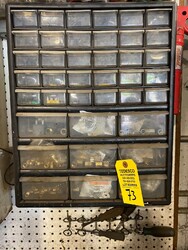39 small plastic drawer assortments of fuses & fittings#74 - Matco bearing splitter,blue empty parts box,3 sledge hammers