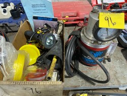 Master mechanic 3/8" drill, Makita sanding disc variable speed#106 - miniature lamps, grease gun, 20 used chemicals