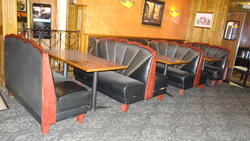 (3) Sets upholstered booths with solid wood tables 5' X 26"#131 - (4) Sets upholstered booths with solid wood tables 4' X 26"