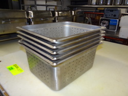 (5) Aluminum Stock Pots, Aluminum Stock Pot Steamer Basket, Braising Pan#272 - (3) Metro Racks: (2) 5' x 18" x 75" and (1) 4' x 18" x 75"