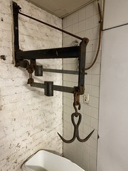Vintage Chatillon 600 lb. Industrial Wall-Mount Butcher Scale#299 - (1) True TPP-93 Three Door Pizza Prep Ref S/C Table
