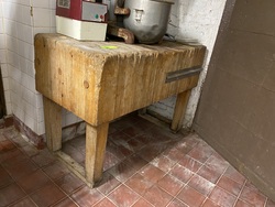 (1) SS Rolling Table 50" X 43" X 20" H with 50" X 8" X 16" Prep Attachment#328 - (1) PITCO SSPG14 12 Gallon Gas Solstice Supreme Pasta Cooker with Baskets