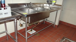 (1) Advance Tabco Single Bay Sink with Hand Sprayer 48" X 30" X 38" H#331 - (1) Advance Tabco 3 Bay Deep Sink with Left and Right Drain Boards and Hand Spray 102" X 23" X 42" H and ECOLAB Sanitizer and ECOLAB Detergent Dispenser