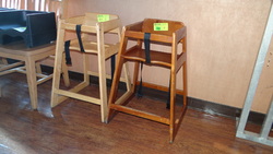 (4) Two Wooden High Chairs Along with Two Booster Seats#371 - (3) Sets Upholstered Booths with Solid Wood Tables 48" X 28"