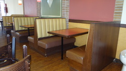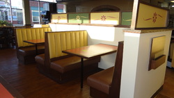 (3) Sets Upholstered Booths with Solid Wood Tables 48" X 28"#372 - (3) Sets Upholstered Booths with Solid Wood Tables 48" X 28"