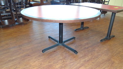 (2) Sets Upholstered Booths with Sold Wood Tables 48" X 28"#378 - (2) Solid Wood Tables. One Round 54" and One 54" X 28"
