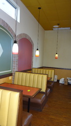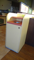 (3) Sets Plymold Contour Laminate Wall Booths. 24" X 42" Top. 42" Bench#393 - (1) Tray Top Waste Receptacle Enclosure with "Thank You" Swing Door, 22" X 22" X 46"