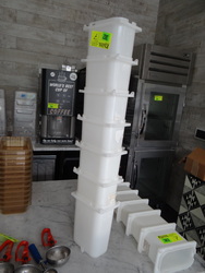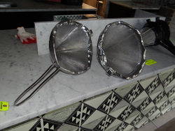(2) 8 1/2" Matfer Stainless Steel Bouillon Strainers#379 - (5) Half Size x6" Cambro Food Containers w/4 Covers