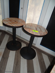 #487 - (2) 20"x36" Oval Metal Framed Table Tops w/Bases