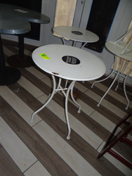 (2) 20"x36" Oval Metal Framed Table Tops w/Bases#491 - (3) Condiment PumpDispensers. New In Box. Along with (4) Condiment Holders
