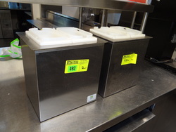 (3) Condiment PumpDispensers. New In Box. Along with (4) Condiment Holders#492 - (2) S/S Stainless Steel Condiment Pump Stations Along With (4) Condiment Holders