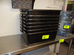 (5) Half Size x6" Cambro Food Containers w/4 Covers#483 - (1) Wood Mobile Trash/Recycling Receptacle 5'x19"x 4'H