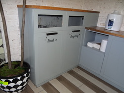 (1) Wood Wall Mountd Trash/Recycling Receptacle 5'x19"x 4'H