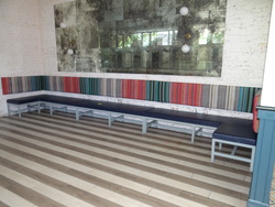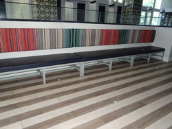 (2) Curved Padded Metal Benches. Approx 6' Each#507 - (1) Three Section Padded Metal Benches. 17' 6"