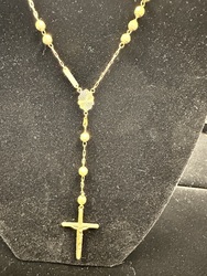 Group of 14 K Gold Jewelry: (1) 14KYG Necklace 19" Long. Approx 21.7 DWT, (2) 14KYG Pendants w/Faux Diamonds. Approx. 19.8 DWT, (1) Gold Filled Ring w/Faux Diamonds. Total Gold Weight Approx. 41.6 DWT.#499 - 14KG Rosary Beads. 23" Long. Approx. 13.5 DWT.