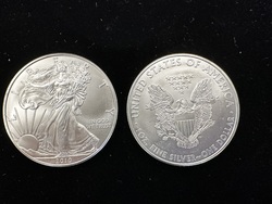 (20) American Silver Eagle Dollars. (18) 1991, (2) 1987. 1 Oz. Fine Silver Each. Total Weight 20 Troy Oz.#499J - Deak-Perera Silver Bar .999 Fine. 10 Troy Ounces.
