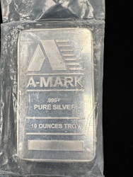 Deak-Perera Silver Bar .999 Fine. 10 Troy Ounces.#499L - A-Mark Silver Bar .999+ Fine. Sealed. 10 Troy Ounces.