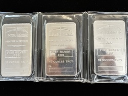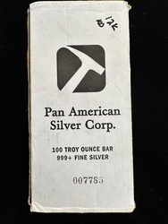 (3) NTR Metals Silver Bars .999 Fine. Sealed. 10 Troy Ounces Each. Total Weight 30 Troy Ounces.#499N - Pan American Silver Corp. Silver Bar .999+ Fine. In Box. 100 Troy Ounces .