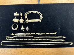 Group of 14 KY Gold Jewelry: Chains, Bracelets, Pendants, Earrings and Ring. Approx. 35.9 DWT.#499R - Group of 10 KY Gold Jewelry: Chains, Bracelets, Ring w/5 Diamond Chips, and Earrings. Approx. 44.5 DWT. Along w/1 Non Gold Bracelet.