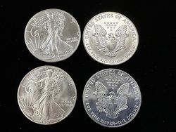 (20) 2004 American Silver Eagle Dollars. (1 Silver Toning) 1 Oz. Fine Silver Each. Total Weight 20 Troy Oz.#499D - (20) 2009 American Silver Eagle Dollars. 1 Oz. Fine Silver Each. Total Weight 20 Troy Oz.